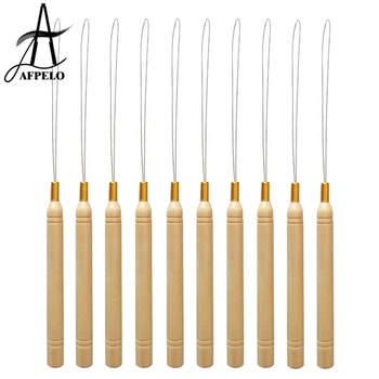 木製ハンドル織り針ヘアエクステンションフック引っ張るツール針糸通しマイクロリングビーズループ